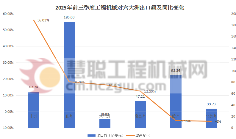 以数据之力,洞悉行业风云!这一系列数据充分体现出我国工程机械出口在外部环境较为复杂的情况下的韧性和潜力,其中非洲、亚洲、南美洲和大洋洲等大洲的增长支撑作用凸显。包括东盟在内的新兴经济体市场需求趋势向好,也为我国工程机械在能力水平提升的基础上不断扩大市场份额提供了空间。