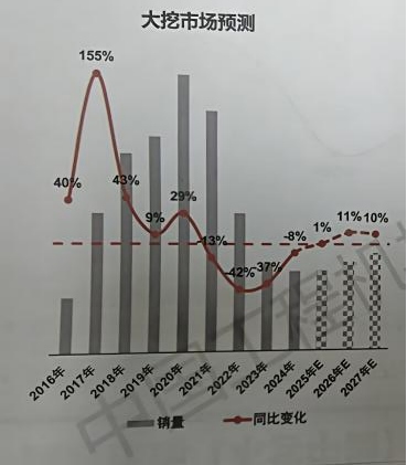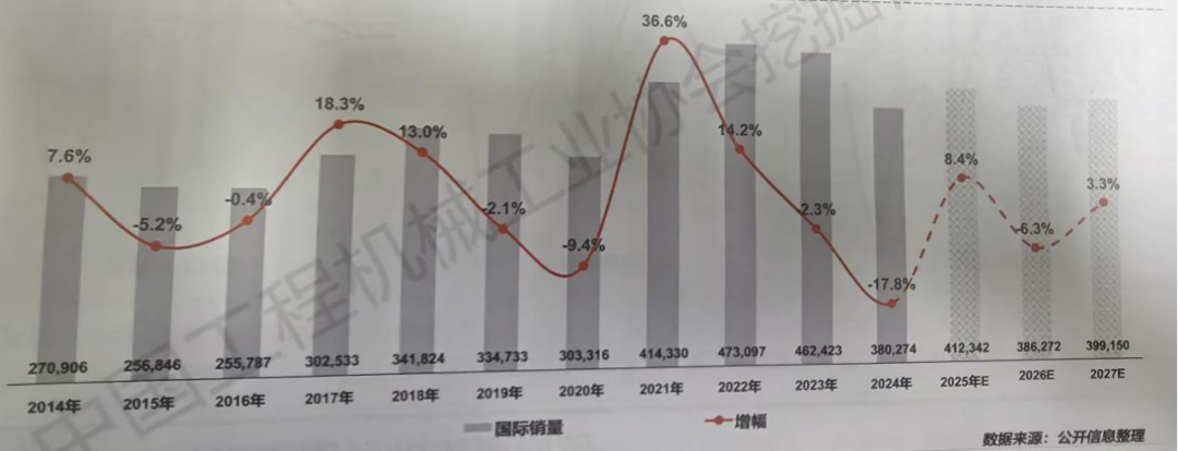2024年以来,国内市场筑底回升,进入新一轮上升周期。随着设备更新政策的推出、国家战略重大项目建设陆续落地形成实物工作量,国内工程机械市场逐步修复。据中国工程机械工业协会数据预测2025年国内市场销量同比增长19%左右,2026年增长10%。未来市场温和回升,有望平稳增长。
