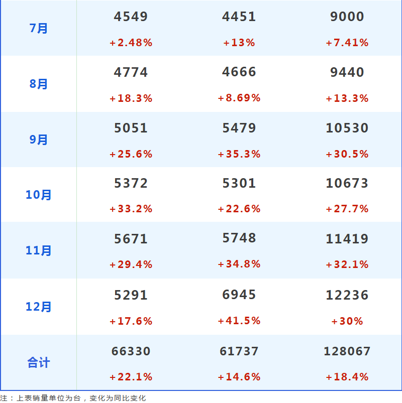 据中国工程机械工业协会对装载机主要制造企业统计,2025年12月销售各类装载机12236台,同比增长30%。其中国内销量5291台,同比增长17.6%;出口量6945台,同比增长41.5%。