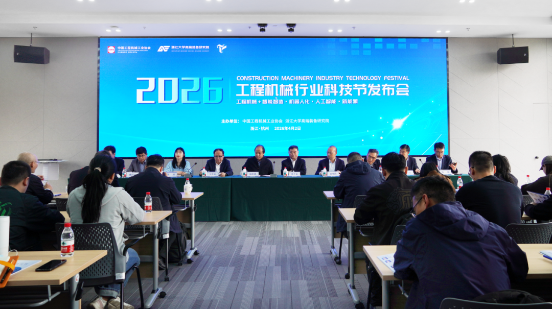 2026年4月2日,中国工程机械工业协会与浙江大学高端装备研究院在浙江省杭州市联合举办了2026工程机械行业科技节发布会。全国政协常委、中国工程院院士、浙江大学工学部主任、浙江大学高端装备研究院院长杨华勇院士;中国工程机械工业协会会长苏子孟,副会长兼秘书长吴培国;北京航空航天大学具身智能机器人研究院院长、遨博(北京)智能科技股份有限公司董事长魏洪兴教授;广西柳工机械股份有限公司总工程师林明智;杭叉集团股份有限公司总经理助理李明辉;浙江大学高端装备研究院常务副院长谢海波教授,总工程师张斌教授同高校、企业、媒体代表等50余人参加了发布会。会议由谢海波主持。