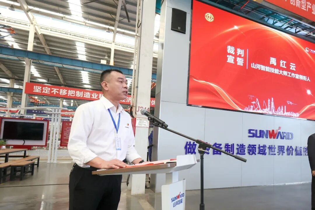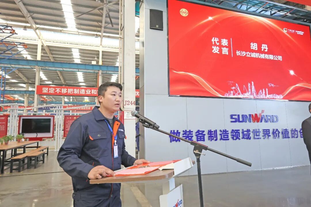 李巍在致辞中指出,产业工人队伍建设改革是党中央推动高质量发展的重大部署,园区是产改落地的主阵地。山河智能作为园区工程机械产业骨干力量,主动扛起主机企业责任,创新“主机牵头、配套参与、技能赋能”的模式,为园区企业产改树立了标杆。他勉励广大产业工人以劳模工匠为榜样,以“工匠之心”铸就“产业之链”,为园区工程机械产业高质量发展注入持久动力。雷光裕在致辞中强调,工程机械是长沙的“城市名片”,也是装备制造产业的核心支柱。当前,长沙正加快打造国家重要先进制造业高地,装备制造业面临转型升级、提质增效的关键任务。本次大赛聚焦工程机械产业链关键工艺,是推动产业链协同发展的创新实践,为全市装备行业协同发展树立了典范。他希望全市装备制造行业以大赛为契机,深化产业协同,强化人才培育,弘扬工匠精神,共同推动长沙装备制造产业向更高质量、更高水平迈进。来自长沙立诚机械有限公司参赛选手胡丹,以及山河智能大师工作室建设项目领衔人禹红云,分别作为参赛选手代表和裁判代表在开幕式上发言并宣誓。