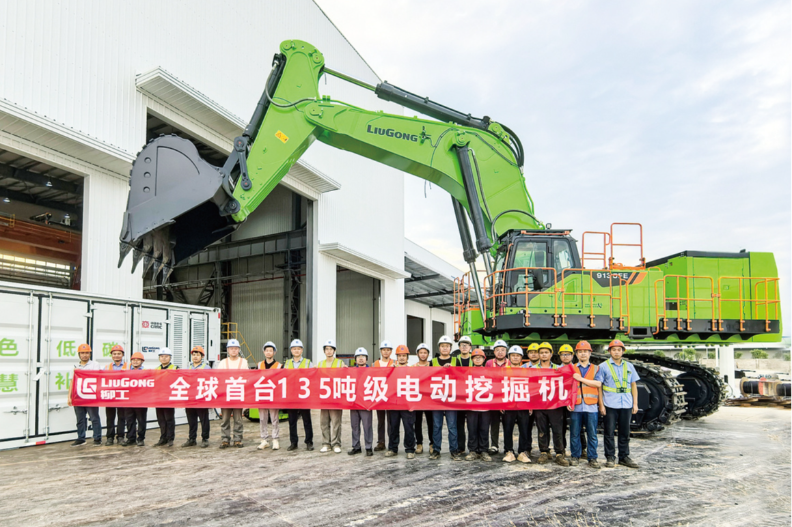7月10日,全球首台135吨级电动挖掘机——柳工9135FE送电超大型挖掘机试制成功,进一步丰富了柳工电动挖掘机家族的产品矩阵。
