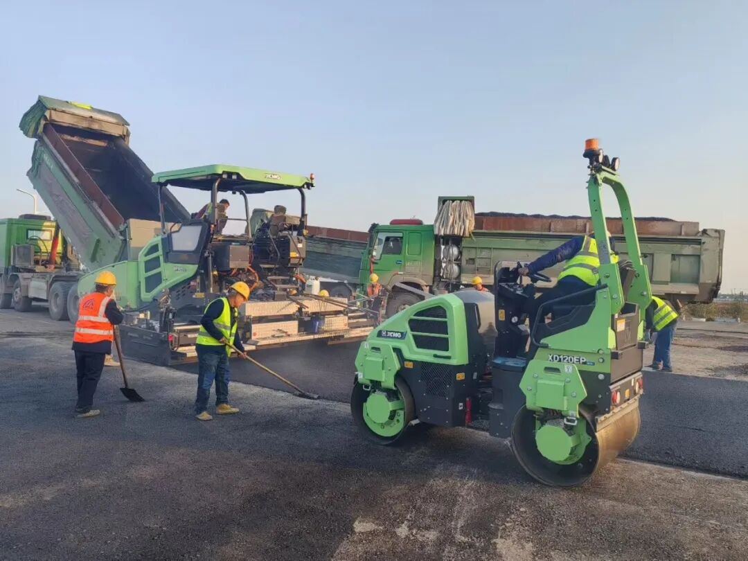 在道路新建施工中,徐工采用RP905HEV混动摊铺机与XD120EP纯电压路机组成“新能源搭档”,解决长距离连续作业补能与效率难题,实现高效摊铺与低碳环保双赢,为雄安新区高标准打造高品质永久路面提供了务实支撑。