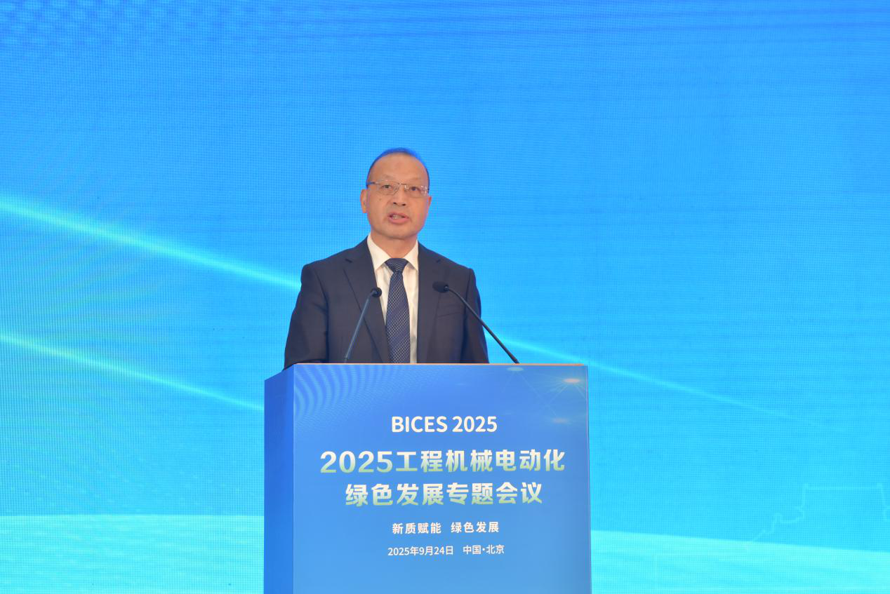 中国国际贸易促进委员会机械行业分会会长周卫东在致辞中表示,作为中国连接世界机械工业的重要桥梁和窗口,中国机械贸促会的核心使命,便是服务于国家的对外开放战略,服务于中国机械工业的高质量发展。我们主办中国(北京)国际工程机械展览会(BICES),并精心策划组织如本次电动化专题会议等一系列高端同期活动,其初心与宗旨,正是为了积极响应国家“双碳”战略目标,紧紧把握全球产业变革的历史性机遇,为中外行业企业搭建一个集展示交流、贸易合作、技术研讨、趋势发布于一体的高端平台。