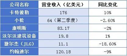 从上表我们可以看出,除卡特彼勒增长10%,沃尔沃建筑设备增长1%之外,半数企业2025年三季度均呈现出不同程度的下滑,普遍承压。