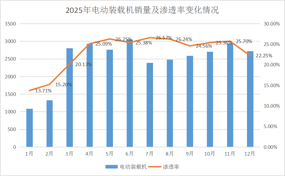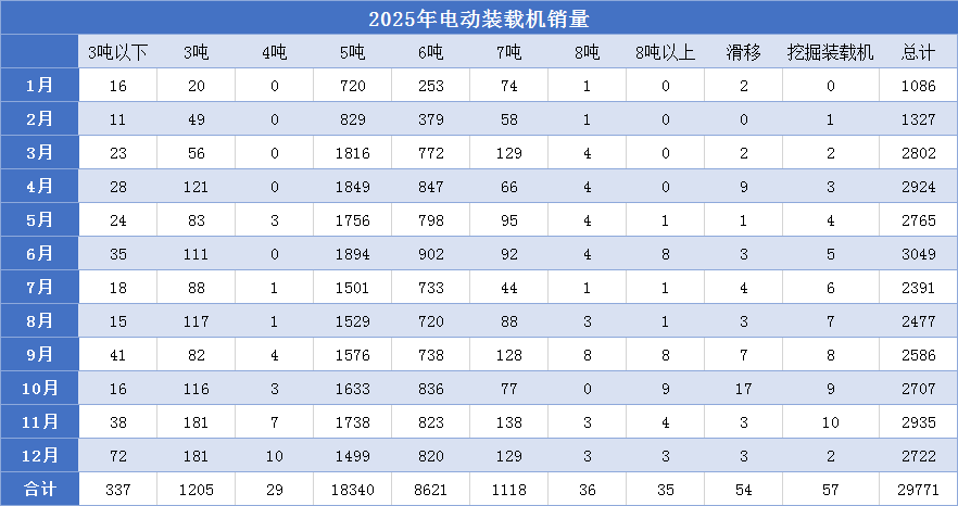 2025 年电动装载机的月度销量走势,与工程行业的季节性周期高度契合,同时展现出更强的需求韧性: