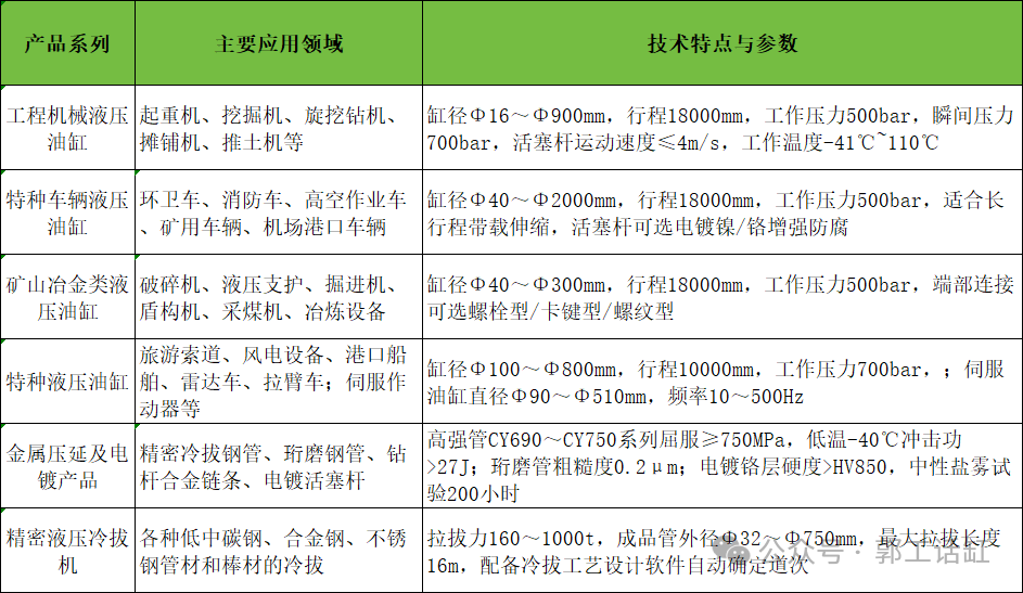 尤为值得一提的是,公司为攀枝花钢铁集团成都钢铁有限公司设计的1200t液压精密冷拔机,可实现直径Φ400-Φ620mm、有效长度12500mm、直线度≤2.5mm/m的精密无缝管拔制,性能处于国内领先水平。这种“既会造油缸,又会造造油缸的设备”的能力,使长城液压从源头掌控了产品质量与供应链安全,这一特色在专栏此前介绍的企业中独树一帜。