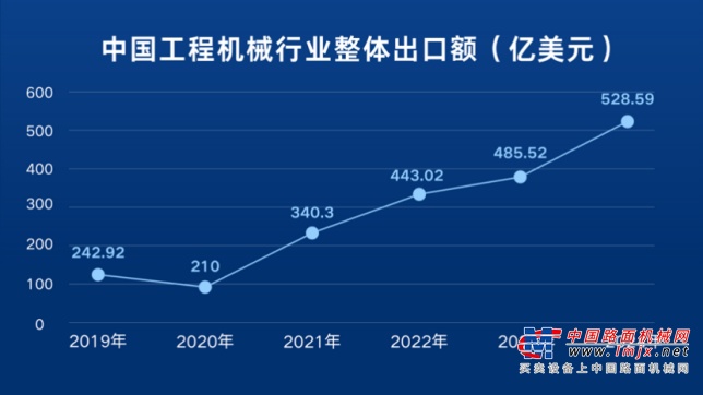 2020-2021,中国工程机械行业整体出口额快速增长,后几年增长保持高位。工程机械成为中国出海产业中一支亮眼的队伍。