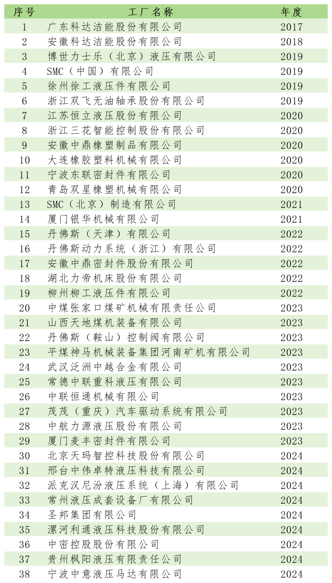 2026年2月5日,工业和信息化部公示了绿色工厂(2025年)名单,液气密行业共有8家企业位列其中,分别是河北卡玛液压机械有限公司、太重集团榆次液压工业有限公司、博世力士乐(常州)有限公司、浙江华昌液压机械有限公司、广东润宇传感器股份有限公司、陕西法士特智能制动系统有限责任公司、浙江松乔气动液压有限公司、宁波长壁流体动力科技有限公司。